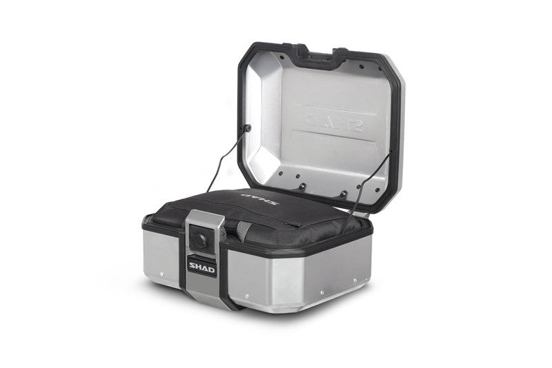 La maleta top TR37 está diseñada y fabricada 100% en Barcelona. Cuenta con un diseño estructural aerodinámico e integrado fabricado en aleación de aluminio endurecible, un tipo de aluminio que permite un grosor reducido de 1,2 mm para obtener la máxima resistencia con un peso mínimo. Bisagras de acero inoxidable AISI 304.Incluye el integrado sistema de cierre “TERRA Lock System” (patent pending). Se trata de una estructura de acero inoxidable AISI 304 de grado industrial que incluye el sistema de cierre y el asa retráctil integrada. Pensada para un uso rápido y con solo una mano, permite al usuario abrir y cerrar la maleta, y también fijarla y quitarla en pocos segundos.Las llaves y el bombín de la TR37 corresponden a la última versión premium de SHAD, con un sistema que reduce las posibilidades de robo y con una cubierta que protege el bombín de la entrada de polvo. Máxima protección para tu contenido gracias a su base interior de foam que reduce el desplazamiento de la carga en su interior. Opción de añadir carga adicional gracias a sus ganchos externos de acero inoxidable AISI 304. Se requiere la instalación de un top master y una parrilla de montaje (no incluido). Tres opciones de parrilla: parrilla estándar SHAD (D1B481PA), parrilla en aluminio (D1BTRPA) o parrilla en aluminio black (D1BTRPA2). Los bombines son fáciles de cambiar: en menos de 5 minutos podrás unificar la maleta top y laterales para utilizarlas con una sola llave. Un tercer bombín está incluido en la maleta del lado derecho para la maleta top. Accesorios (no incluidos): Respaldo de dos piezas (D0RI75) y bolsa interna expandible (X0IB47).