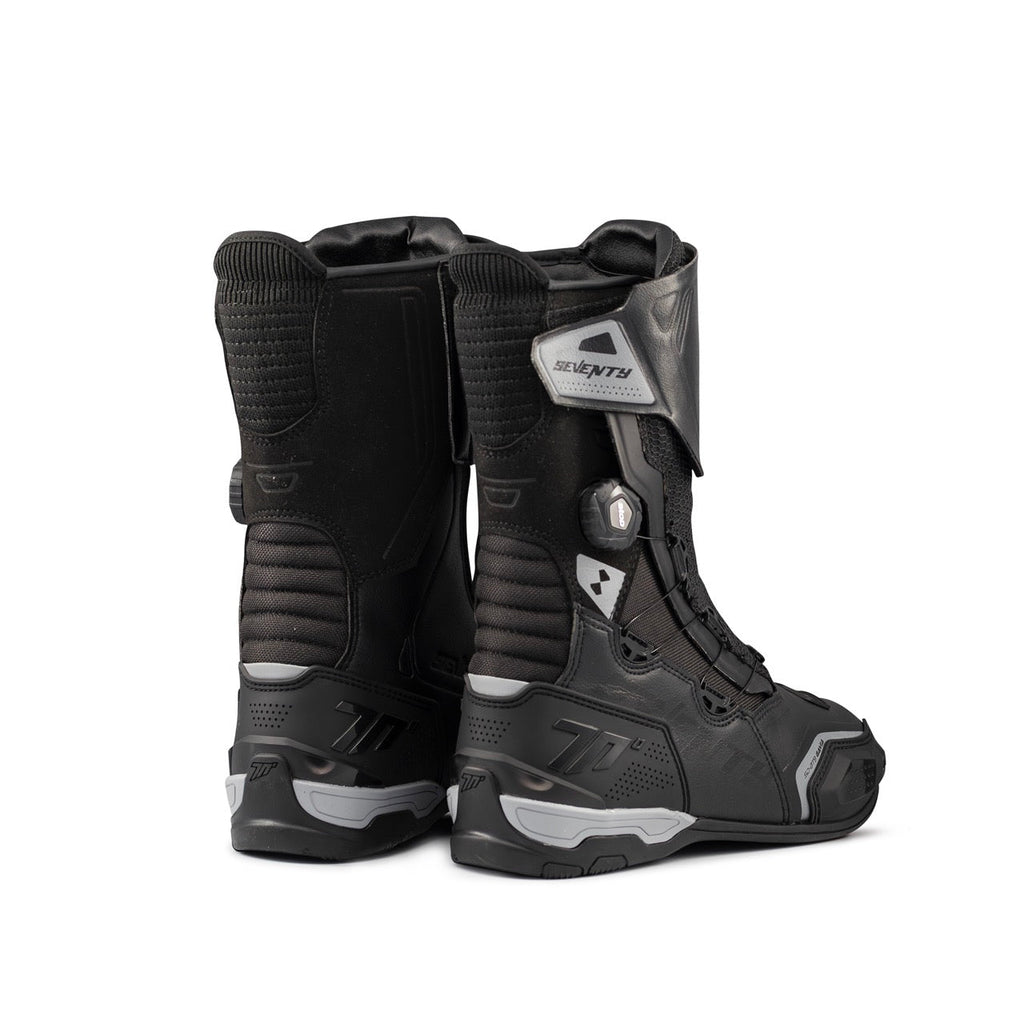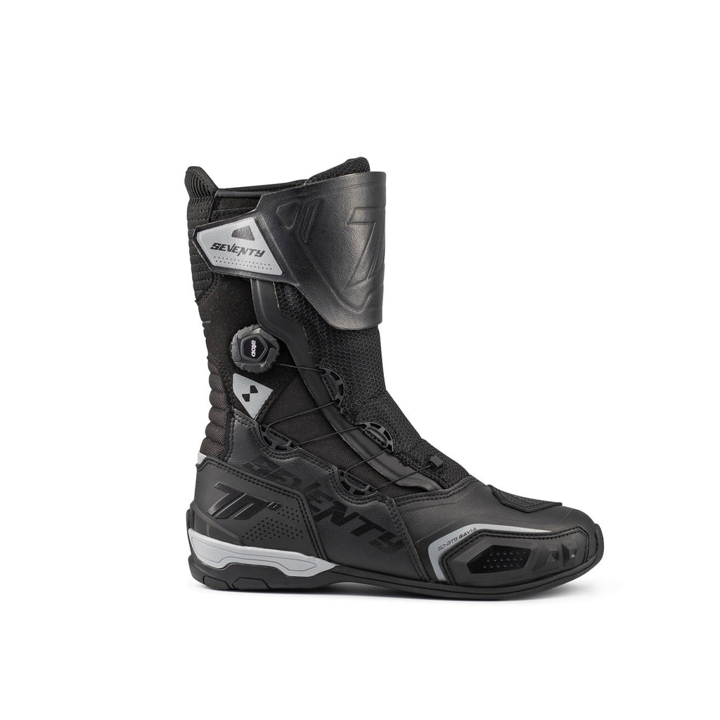Las botas SD-BT9 Gavia de Seventy 70 combinan estilo sport-touring con un diseño de caña alta, ideales para largas rutas en condiciones variadas. Fabricadas en piel sintética y nylon, estas botas integran la tecnología Dry70 con una membrana impermeable y tejido Airknit para una ventilación y protección óptimas en cualquier clima.