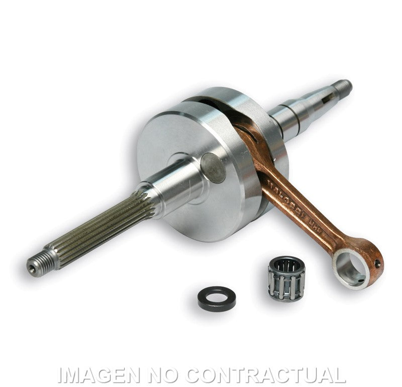 - Biela forjada en 18 Ni Cr Mo 5 con baño de cobre, acoplada al cigüeñal con jaula de agujas de precisión para alta velocidad
