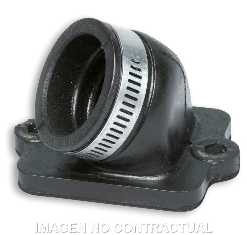 Los colectores de goma Malossi presentan una estructura compuesta porque se producen a partir de una pieza de aluminio que se engloba en un especial material plástico inatacable por los aceites y por las gasolinas, garantizando de esta manera una notable rigidez de la base de fijación con el cárter y una buena elasticidad del cuerpo del colector