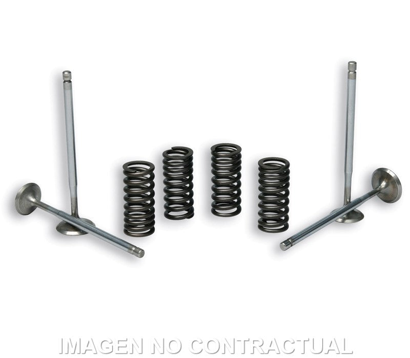 Completamente perfilado para obtener el máximo rendimiento en todas las revoluciones Fabricado en acero inoxidable especial no magnético Vástago de válvula con revestimiento de cromo duro resistente al desgaste Mayor diámetro de la cabeza de la válvula Tolerancias dimensionales y de forma extremadamente ajustadas Recubrimiento de estelita en el asiento y cabezal de la válvula Válvulas totalmente rectificadas. Ø del vástago: 5 mm Ø de la cabeza: 20,5 mm Longitud total: 95,3 mm |